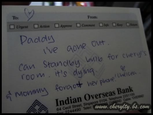 I write notes all the time. Especially for Daddy if I'm going out.and my get well soon gift from sis, she came home last night wanting to give me, but i was asleep, so she left her note.i forgot to blog about this, sis started this habit of leaving note since i-dont-know-when.to daddy...and to me, on the same day...and my light really died on me that night.i was looking high and low for this top.i assume, she writes to kor and mommy too.